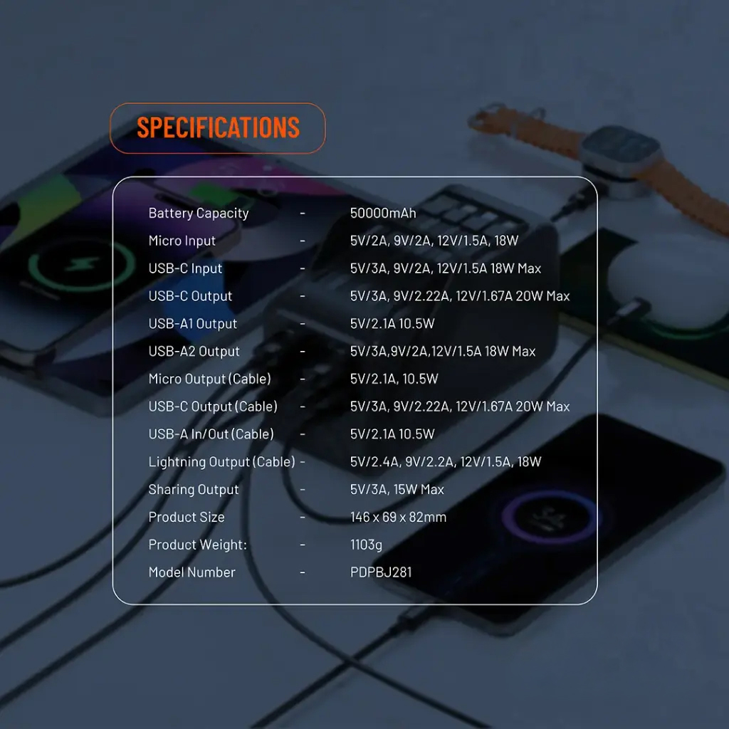 ⭐ مميزات باور بانك Porodo Lara 50000mAh